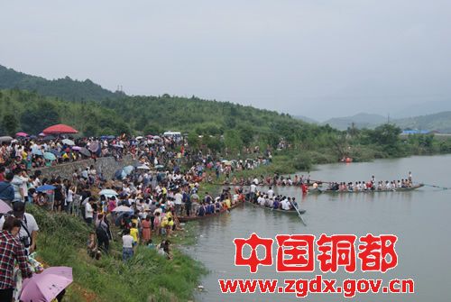 6月12日这天,新营街道新营村的村民们自发组织了龙舟比赛,欢庆我国传统节日端午节。龙舟比赛吸引了万余观众驻足观看。据悉,该村每年一次的龙舟赛至今已有两百多年的历史。(实习记者杨汪慧心 摄)