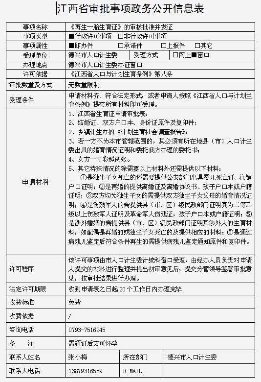 《再生一胎生育证》的审核批准并发证