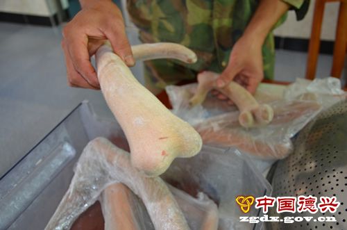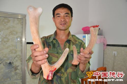 刘永根还告诉记者,每次割完鹿茸后,在被割处都会长出一个比石头还硬的“角帽”,等“角帽”掉了,才会开始长新鹿茸,而“角帽”可以磨成粉,用来治疗咽炎、乳腺炎等疾病。