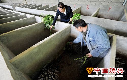 2015年,身为海口镇江田村村干部的董福盛,针对地处山区、环境气候好优势,以基地+农户+合作社的形式,通过技术入股、劳力入股和资金入股的形式,吸纳了130余户包括贫困家庭在内的农户养殖1300余头豪猪,仅今年就可出栏成品豪猪600余头,从而带领村民通过特色养殖豪猪增收致富。(卓忠伟 董家富摄)